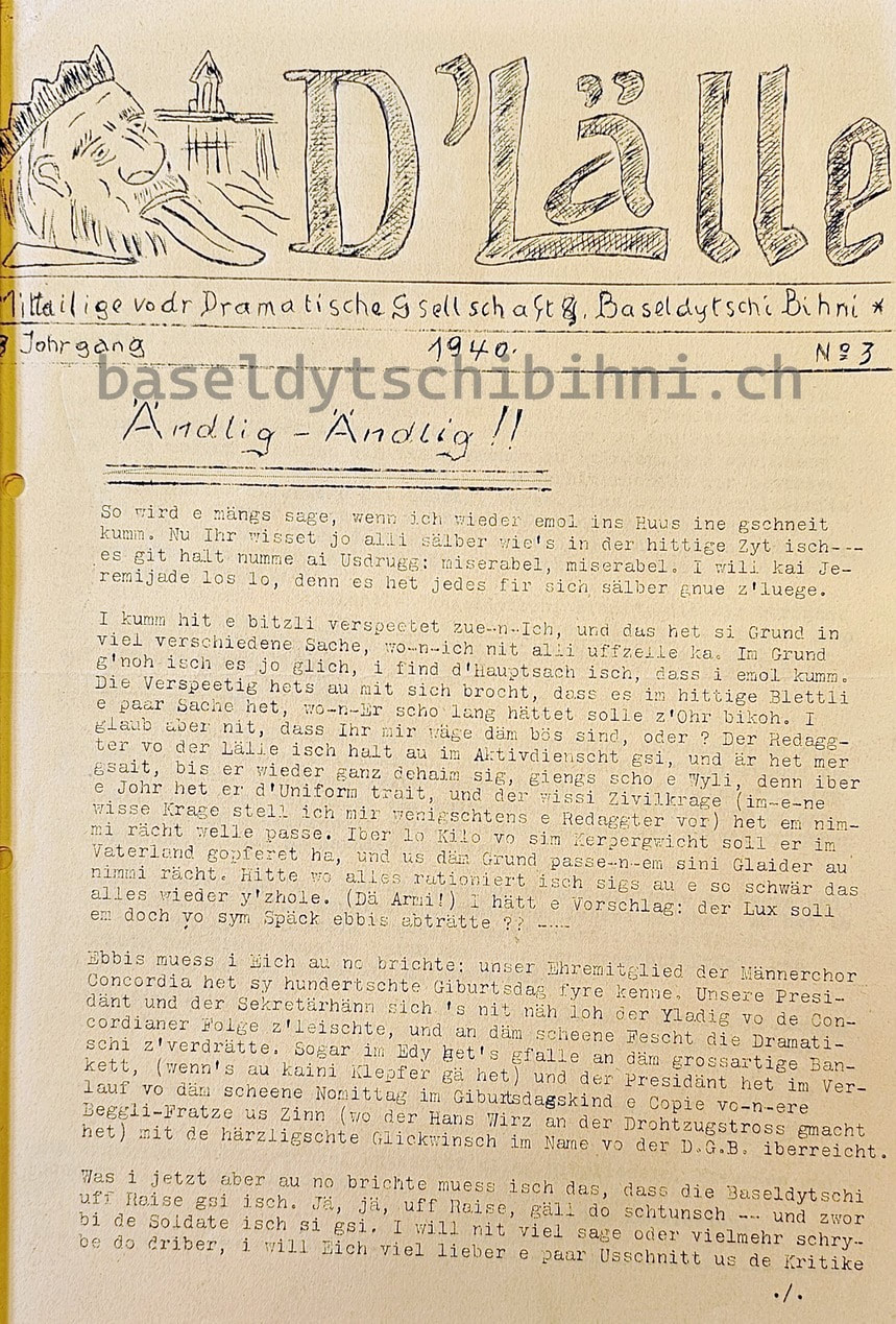 1938Von 1938 bis 1940 hiess unsere Vereinszeitschrift noch "D'Lälle" und wurde mit mechanischer Schreibmaschine getippt.