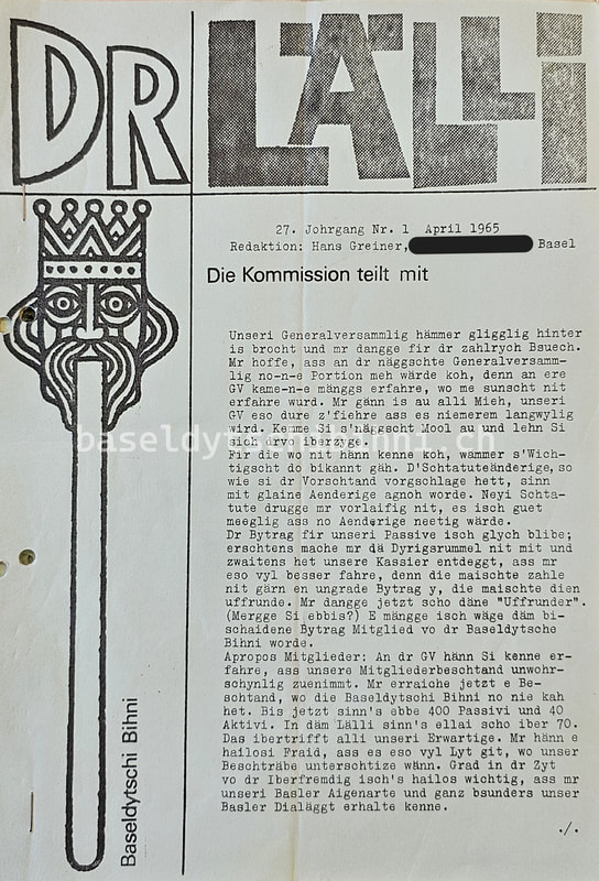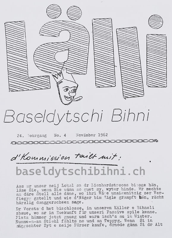1962Im Zusammenhang mit dem Einzug in die damals neue Lokalität an der Leonhardsstrasse 7 erhielt "Dr Lälli" auch ein neues Outfit (ohne "Dr" davor). Titelblatt der Ausgabe Nr. 4 von 1962.